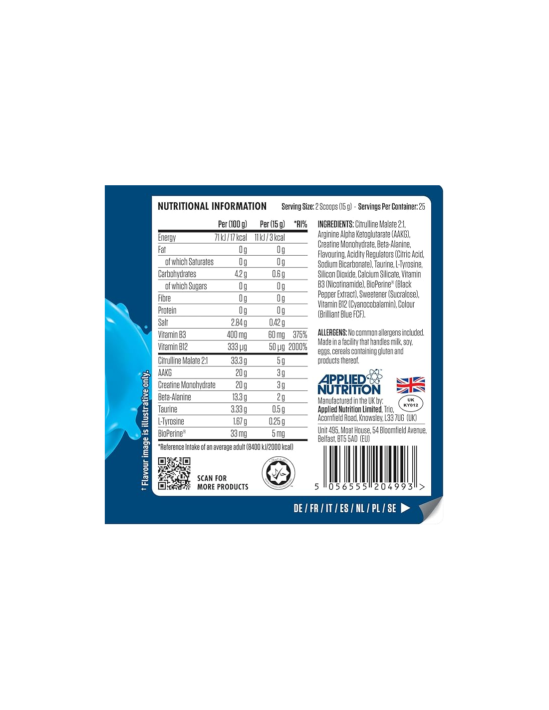 A formula úgy van kialakítva, hogy koffein és egyéb serkentők nélkül is kiváló edzésteljesítményt nyújtson, akár más edzés előtti szerekkel is kombinálható.