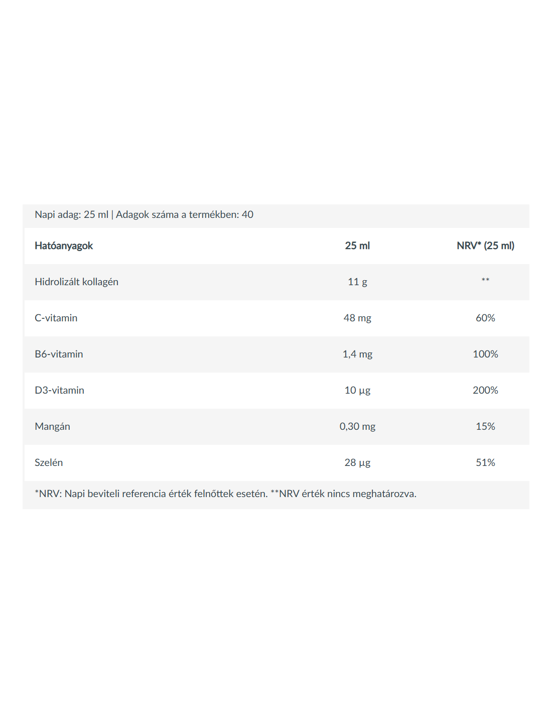 - 11 g hidrolizált kollagén/adag (25 ml)