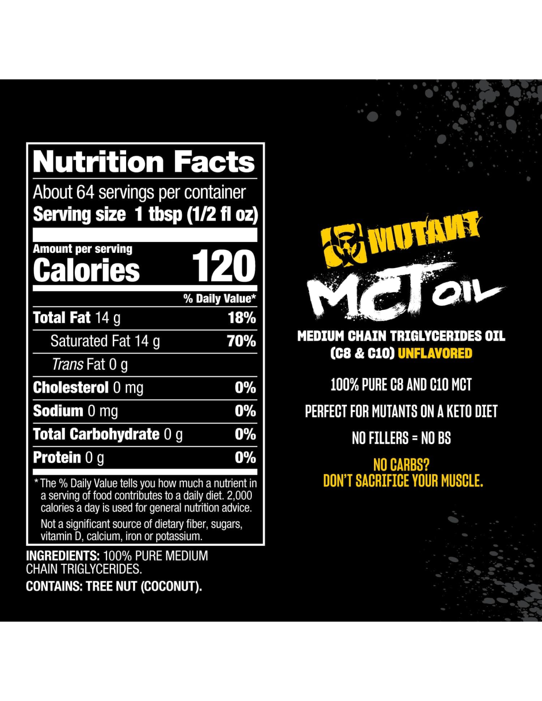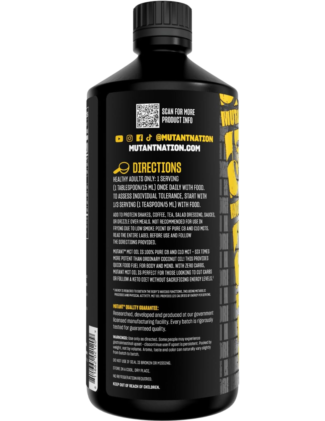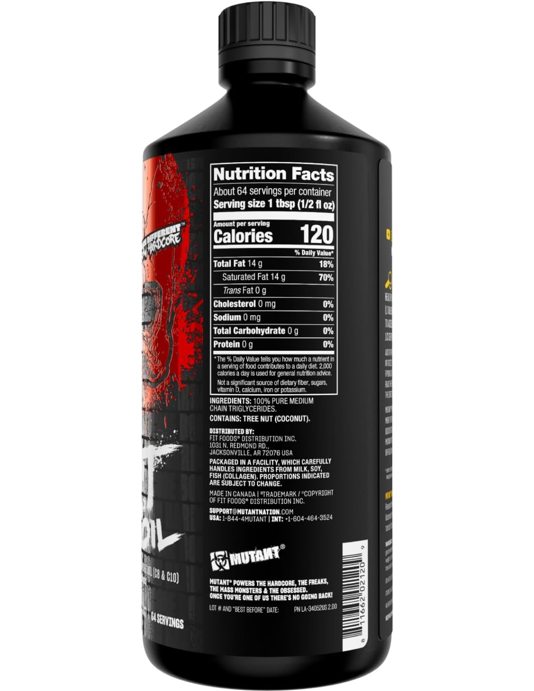 A MUTANT Core Series MCT olajban található közepes láncú trigliceridek kókuszolajból származnak, koncentrációjuk a hatszorosa a sima kókuszolajnak, mely mindössze 15%-ban tartalmaz C8 és C10 MCT-ket. Az élsportolóknak több energiára van szükségük, melyre az MCT olajok kiválóak.