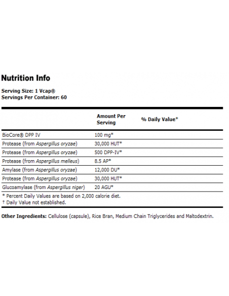 A BioCore DPP IV enzim a nehezen emészthető prolintartalmú peptidek bontásáért felel, melyeket bizonyos tejtermékek és gabonák tartalmaznak.
