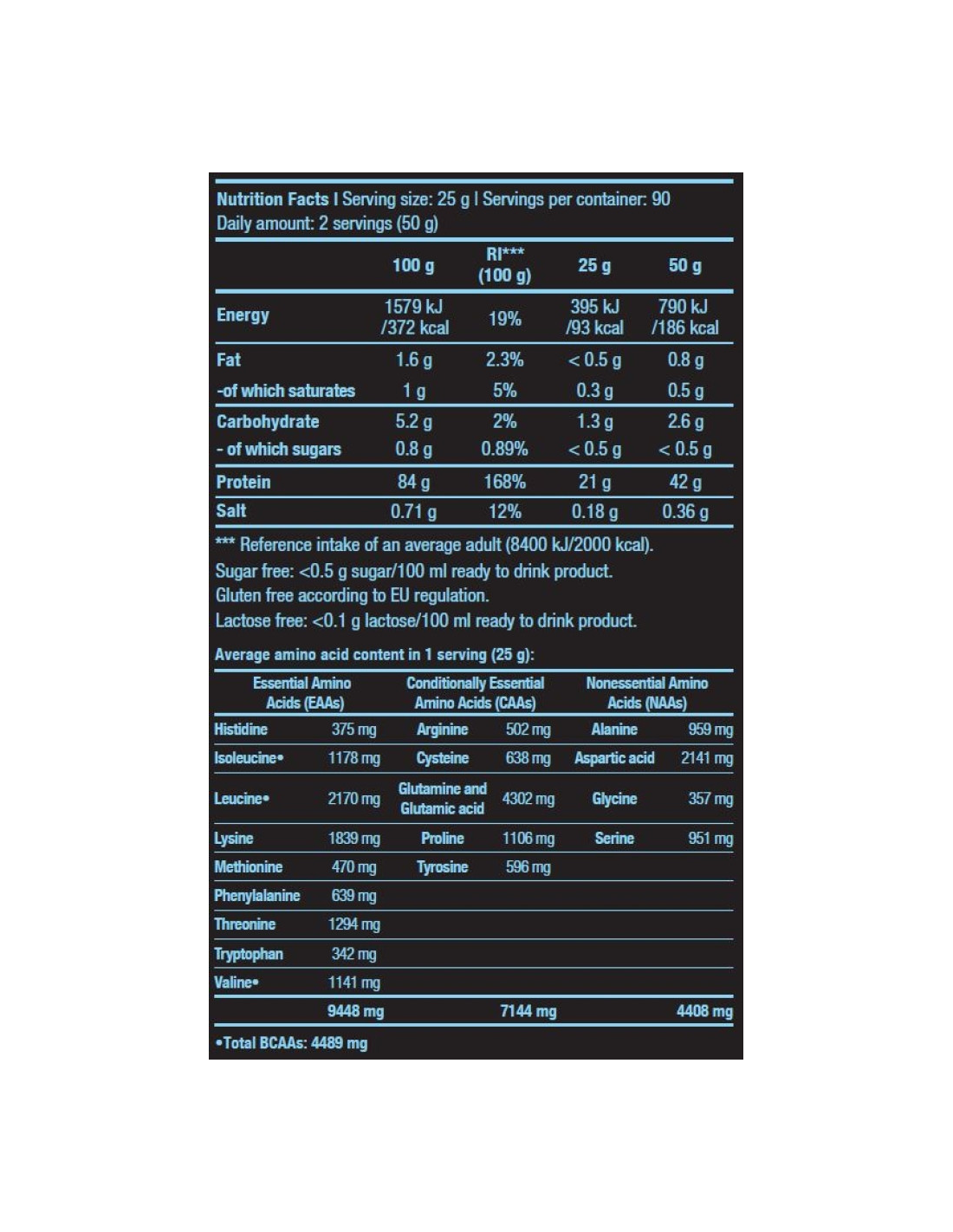 Tejsavó-fehérje izolátum, glutamin és BCAA aminosavakkal.