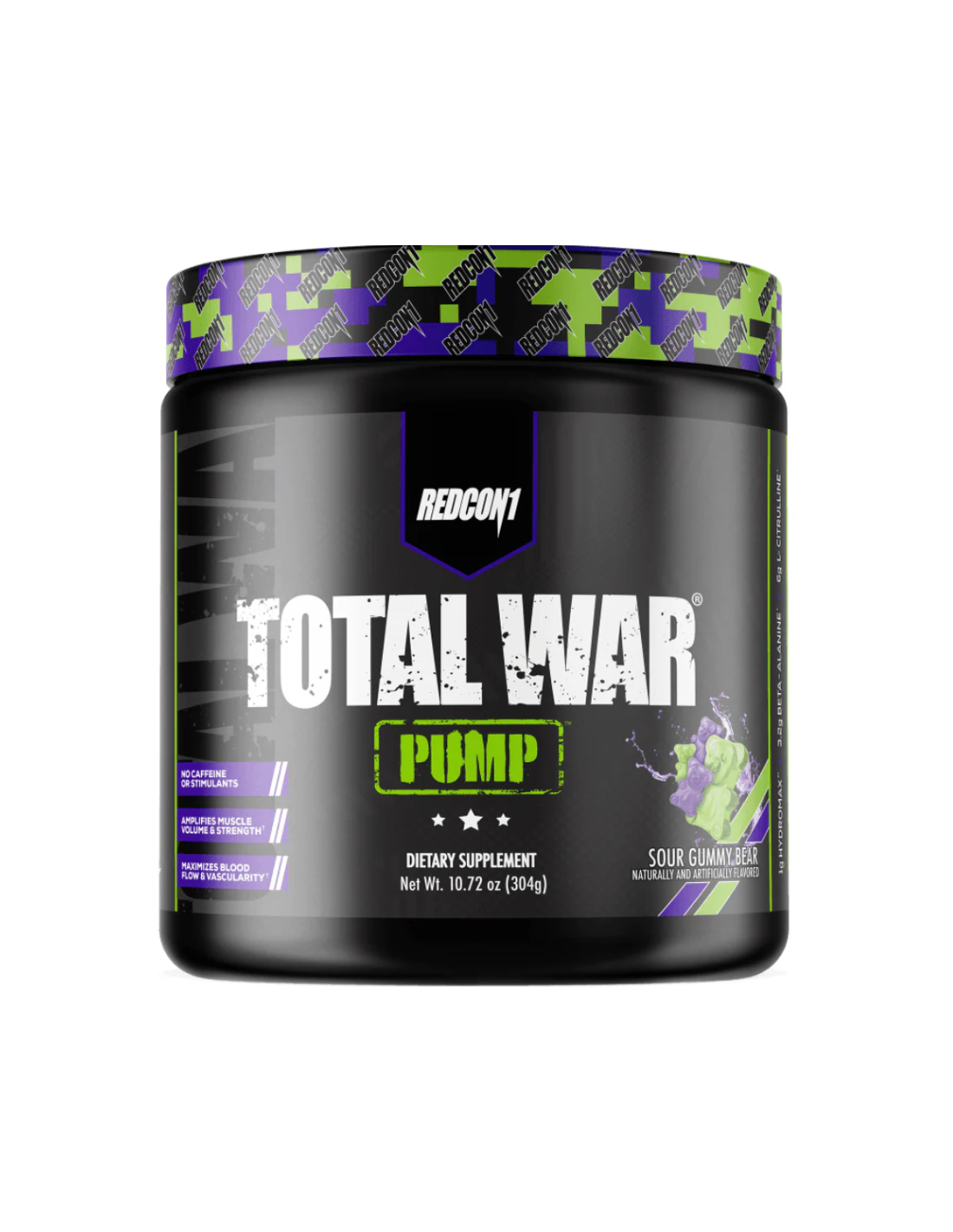 A TOTAL WAR PUMP a Redcon1 stimulánsmentes, edzés előtti formulája, amit kifejezetten intenzív izompumpára, fokozott véráramlásra és teljesítményre terveztek.